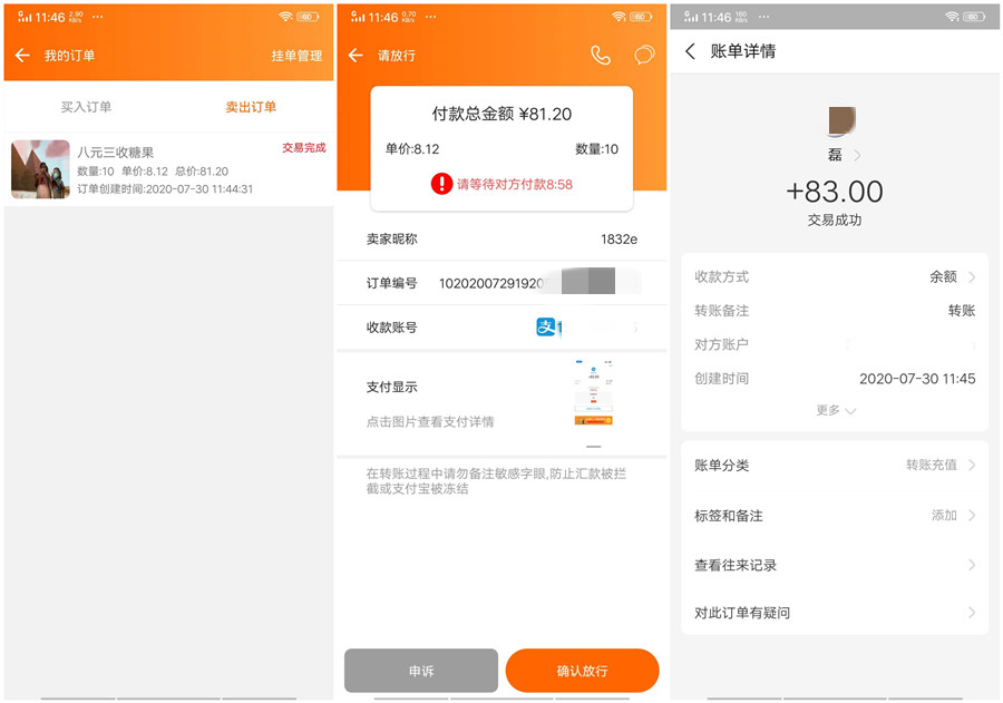 小编发帖之前成功出售了10个糖果,小编是LV4,手续费25%,一共扣除了12.5个,成功变现83元,对方秒付款!