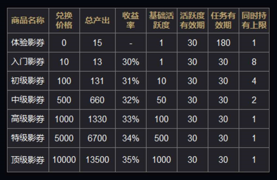 3、一个用户,可同时兑换多个不同类型的影券任务。但同一类型影券,兑换所持份数,不能超过该影券规定的份数上限。