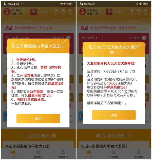 大发发转发文章赚钱软件上线活动一览: