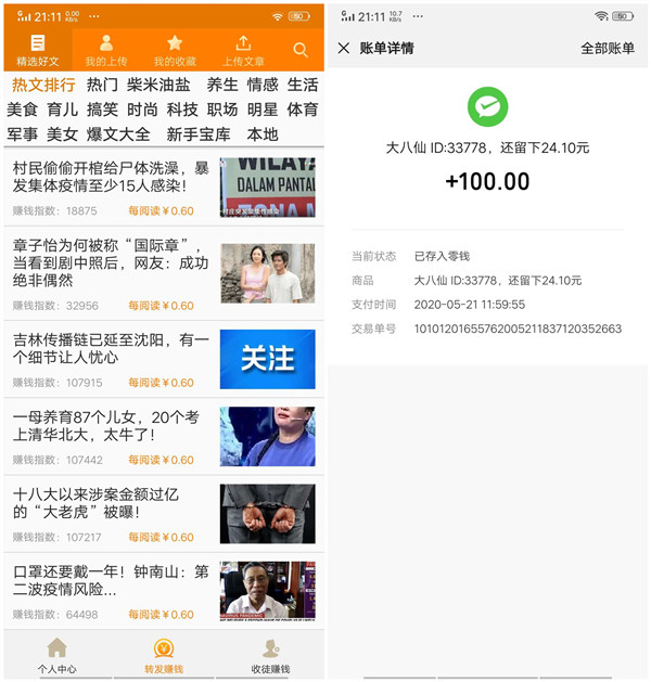 那行,那做转发文章赚钱吧,像大八仙APP,转发文章被好友点击一次就能赚6毛,100次点击可以赚60元,收益也非常丰厚!