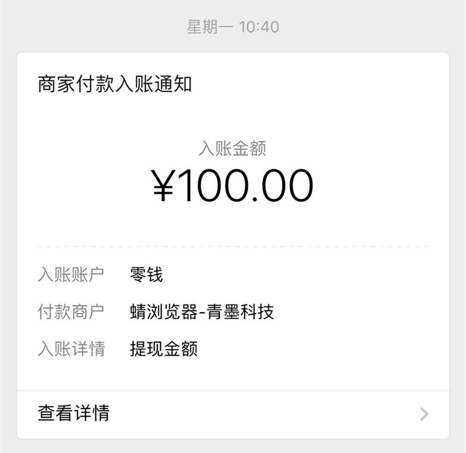 第四步:小鱼赚钱满10元可以提现到微信,每个月首次提现需审核1-2个工作日,后续提现为秒到账,小编前几天提现了一笔100元就迅速的到账了,而且多年间从没有掉过链子,大公司非常靠谱。