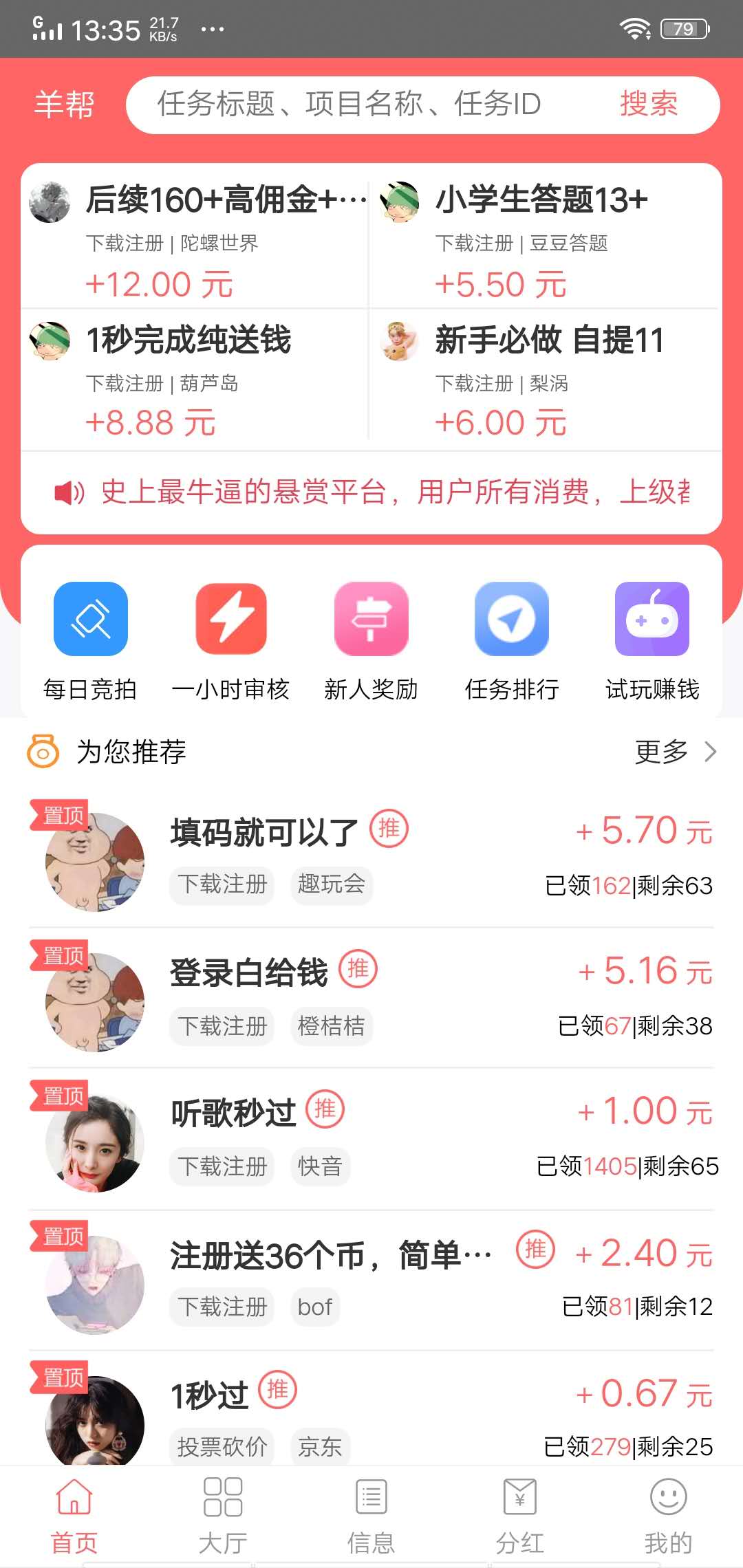 3、羊帮独创做任务即可参与任务分红,完成任务分红池注入0.1元(佣金高于5注入0.2元),无上限;