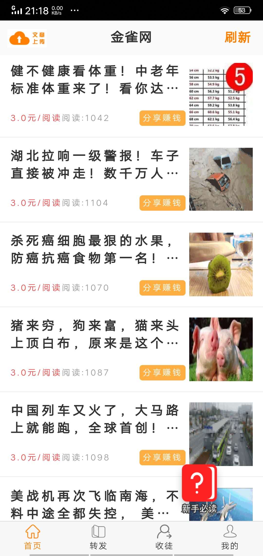 金雀网APP:转发单价全天提升至3元/阅读,日赚百元! 应用介绍