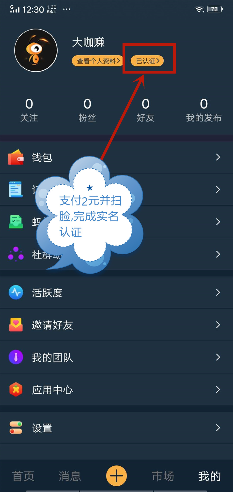 1、新人注册后,完成实名认证,需支付2元(需扫脸),审核快速;