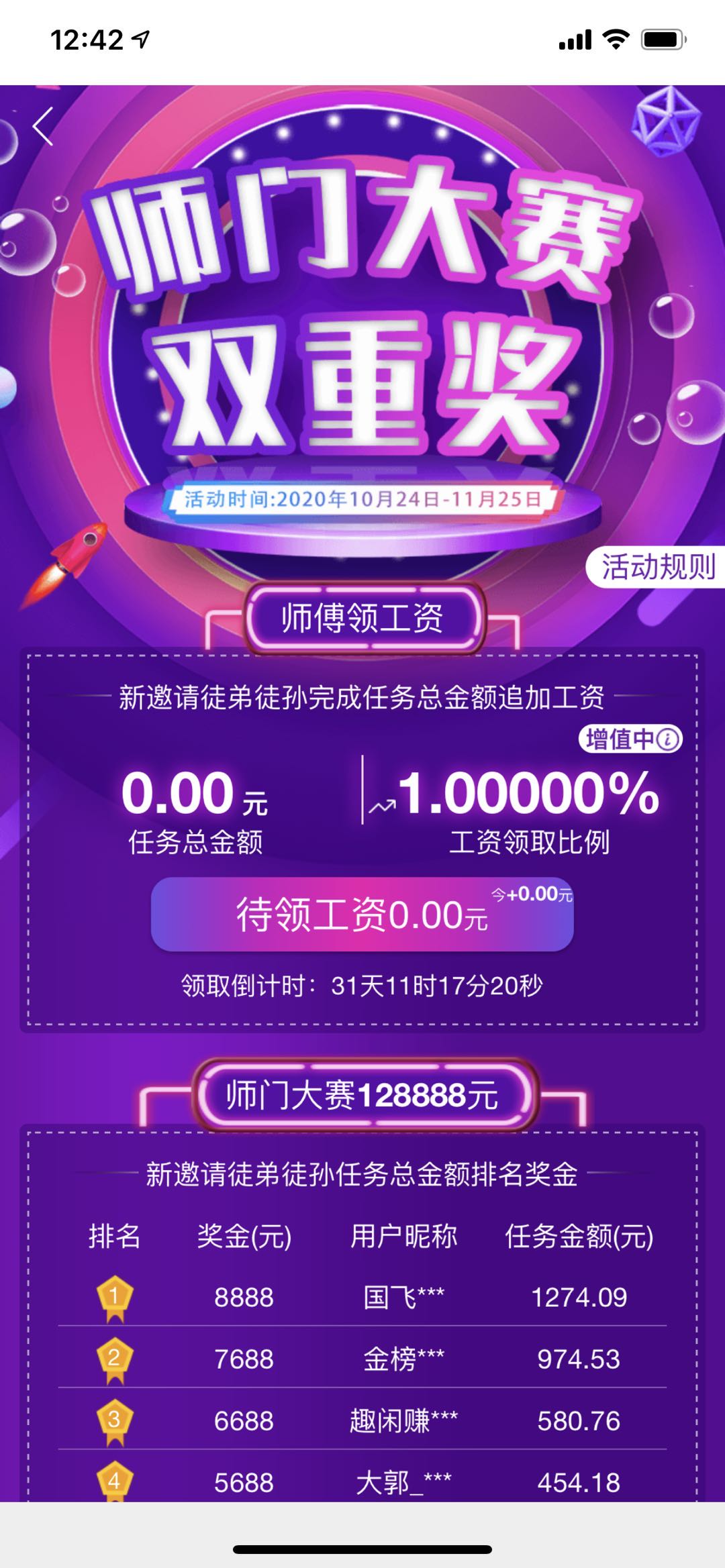趣闲赚APP开启全新一期排行榜,师门双重奖赢128888元 应用截图