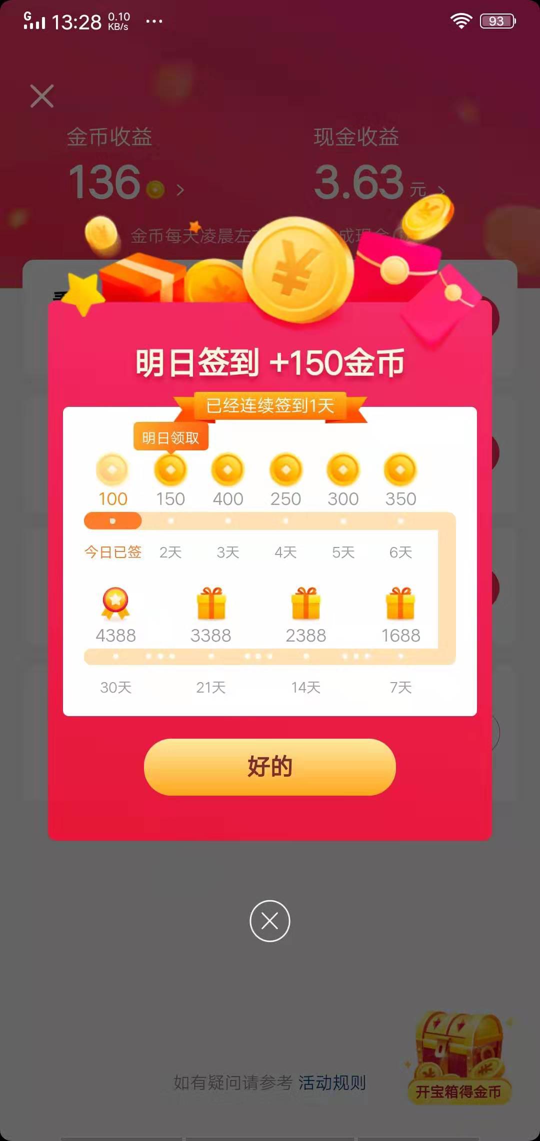 2.签到赚钱是每天打开抖Y极速版app,在app内完成一次签到即可获得金币奖励。连续签到到第7天可以获得