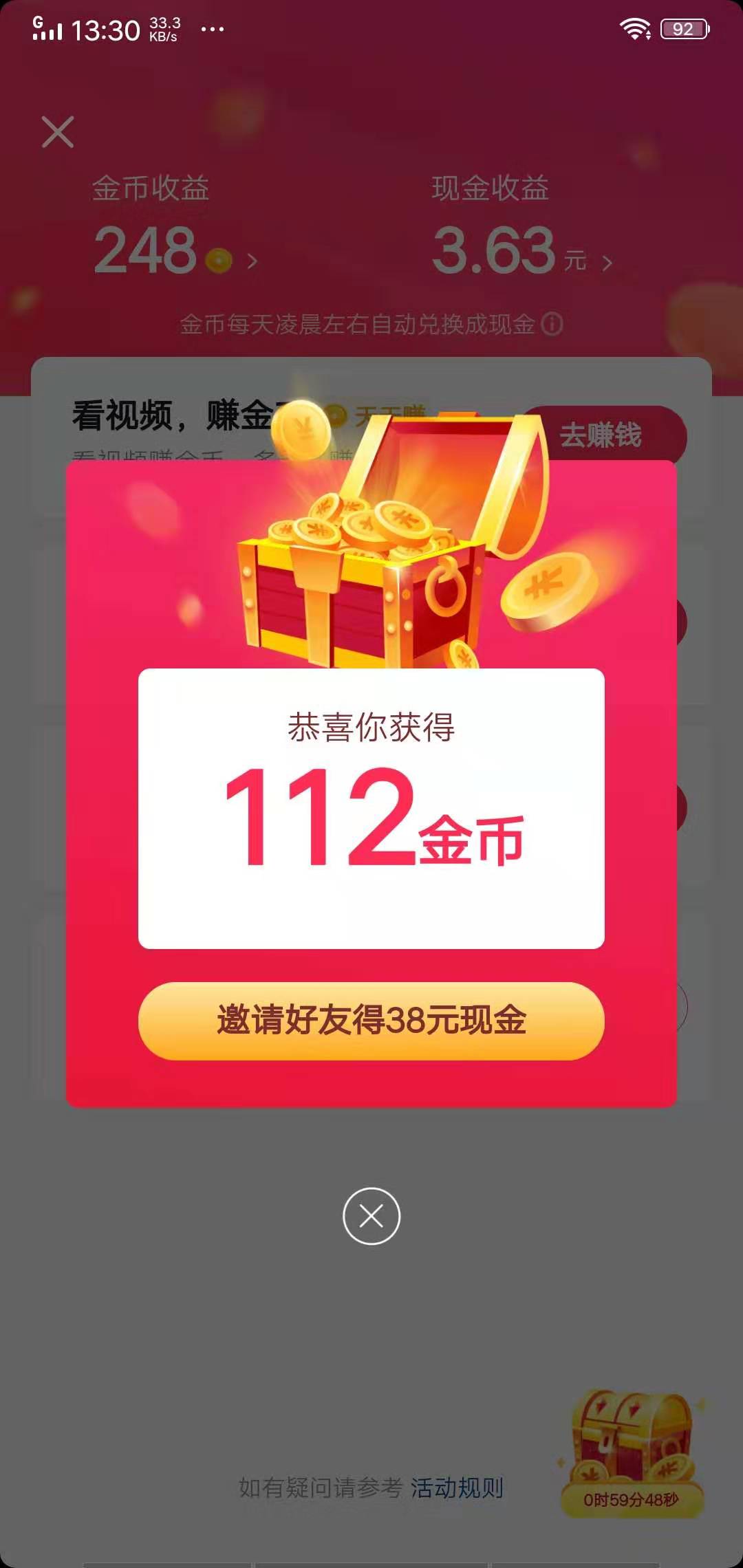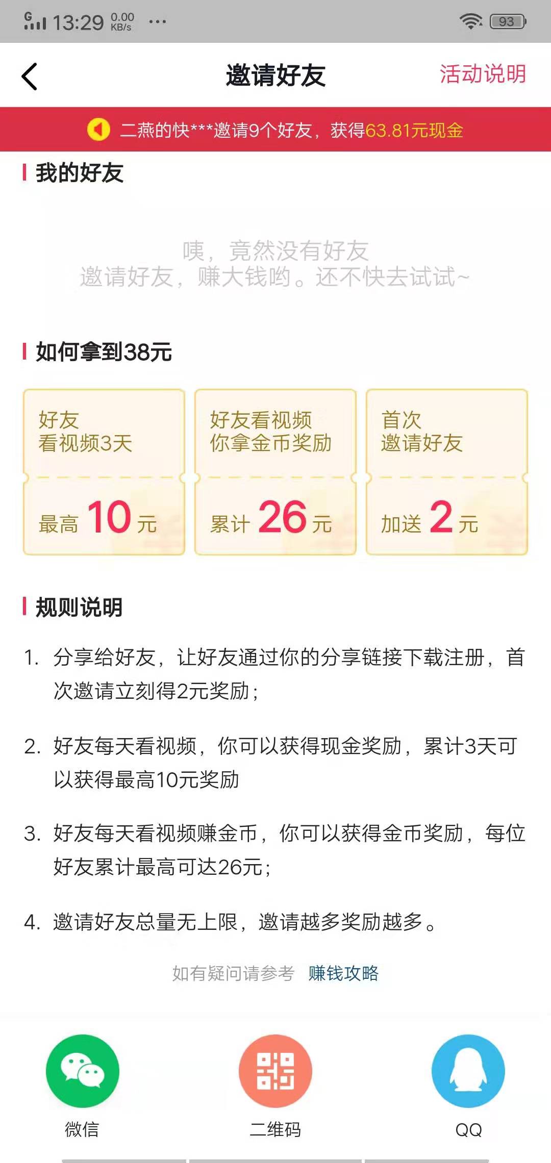 4.邀请好友获得36元奖励,首次邀请多送2元,好友连续3天看视频你都有奖励,后续26元为金币的形式赚得!